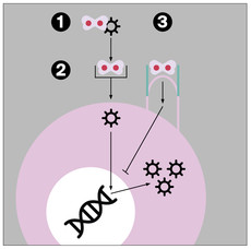2. Es blockiert den Rezeptor, über den das Virus in die Wirtszelle gelangt