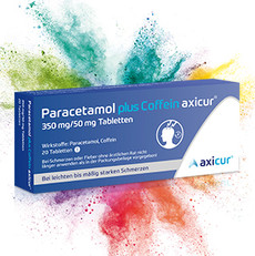 Paracetamol plus Coffein axicur® vereint die Vorteile des bewährten Schmerzmittels Paracetamol mit dem Wirkstoffbeschleuniger Coffein und sorgt so für rasche Abhilfe.