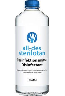 Zur richtigen Anwendung von all-des Sterilotan sollte ausreichend Desinfektionsmittel in die Handfläche gegeben und für mindestens 15-30 Sekunden mit beiden Händen verrieben werden. Dabei sollte darauf geachtet werden, dass die Hände vollständig mit dem Desinfektionsmittel benetzt werden. Sterilotan kann ebenfalls für die Flächendesinfektion genutzt werden.