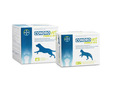 Leverkusen - class="PI-Text">Bayer ergänzt sein umfassendes Portfolio jetzt neu mit einer Produktreihe verschiedener hochwertiger Nahrungsergänzungsmittel für Hunde und Katzen, die auch in der Apotheke vertrieben werden. Den Anfang macht Condrovet® Force HA, das auf Basis von natürlichen Inhaltsstoffen wie Glukosamin und Chondroitinsulfat Tiere mit Gelenkbeschwerden unterstützt. Der Bedarf ist groß: Einer von fünf Hunden im Alter von über einem Jahr leidet bereits an einer Osteoarthrose und auch 34 Prozent der Katzen im Alter von 6 bis 7 Jahren weisen degenerative Gelenksveränderungen auf. In solchen Fällen können spezielle Nahrungsergänzungen wie Condrovet® die Bewegungsfreude der Tiere gezielt fördern.