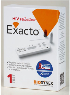 Der EXACTO HIV-Selbsttest ist einer von drei HIV-Selbsttests, die aktuell eine CE Zulassung haben und als Medizinprodukt an Konsumenten mit einer Sensitivität von nahezu 100% vertrieben werden dürfen. hat. Er ist speziell für die Heimanwendung entwickelt worden, weil er sehr einfach in der Anwendung ist und im Falle eines positiven Resultates sofort fachkundige Hilfe anbietet. Der EXACTO wird in Zusammenarbeit mit der Deutschen AIDS-Hilfe angeboten. Ein Teil der EXACTO-Verkaufserlöse unterstützen die Arbeit der deutschen AIDS-Hilfen und damit das Ziel der Kampagne „Kein AIDS für alle“.