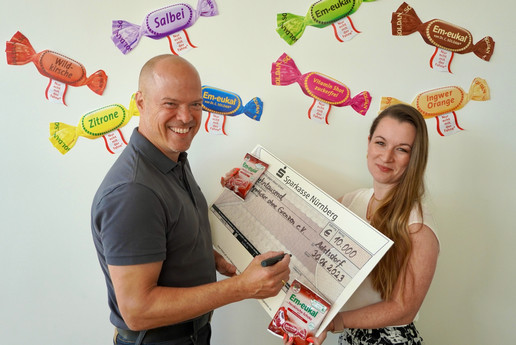 Adelsdorf - Nachhaltiges Engagement liegt Dr. C. SOLDAN seit jeher am Herzen. Das Familienunternehmen produziert ausschließlich in Deutschland und investiert kontinuierlich in eine nachhaltige Infrastruktur – energieschonende Produktionsanlagen inklusive. Zudem gehört es zur Philosophie der Bonbonspezialisten regionale und überregionale Projekte im sozialen Bereich zu fördern. Bereits seit 2017 unterstützt man mit der Marke Em-eukal, nur echt mit der Fahne, jährlich unter anderem die Hilfsorganisation Apotheker ohne Grenzen Deutschland e.V. Bei der Schecküberreichung vor wenigen Tagen drückte Perry Soldan, geschäftsführender Gesellschafter, seine große Freude aus: „Mit dem erneuten Betrag von 10.000 Euro würdigt unser Familienunternehmen die wertvolle Arbeit des Vereins und trägt gezielt zum Wohlbefinden benachteiligter oder von Not betroffener Menschen bei. Denn Premiumbonbons für Wohlbefinden herzustellen, ist die Mission unseres Familienunternehmen seit mehr als 120 Jahren." Von Oktober 2022 bis Juni 2023 gingen pro in der Apotheke verkauftem Beutel Em-eukal Herzkirsche-Schoko fünf Cent an die Hilfsorganisation.