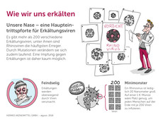 Vor allem im Winter sind wir anfällig. Das hat viele Gründe: Wir halten uns mehr in geschlossenen Räumen auf, haben also engeren Kontakt zu Menschen, weshalb das Ansteckungsrisiko steigt. Immerhin können wir mit einem einzigen Nieser bis zu 40.000 Tröpfchen Speichel und Schleim voller Viren bis zu 40 Meter weit herausschleudern. Mit unseren Händen übertragen wir die Erreger noch direkter – entweder durch Händeschütteln oder indem wir etwa kontaminierte Türgriffe anfassen. Berührt man dann die Nase, kann es schon geschehen sein. Dazu kommt die in Innenräumen zumeist trockenere Luft, die die Schleimhäute unserer Atemwege eher austrocknen lässt. Diese können dann ihre Schutzfunktion als Barriere schlechter wahrnehmen. Und die häufigsten Erkältungsviren, die Rhinoviren, bevorzugen Temperaturen von 3° bis 33° Grad Celcius. Ihre Infektiosität ist daher bei nass-kaltem Wetter hoch, auch weil dann unsere Nasenschleimhäute wegen schlechterer Durchblutung kühler sind.