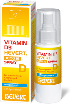 Guter Schlaf ist bekanntlich auch für unser Immunsystem sehr wichtig. Tatsächlich ist die Produktion von Abwehrzellen im Körper während des Schlafs am höchsten. Der Körper ist rund ums Jahr einer Vielzahl an Krankheitserregern ausgesetzt, da ist ein starkes Immunsystem gefragt. Vitamin D3 Hevert 1000 IE Spray trägt daher nicht nur dazu bei, die normale Funktion von Muskeln und Knochen zu erhalten, sondern unterstützt auch die Immunabwehr. 1 Sprühstoß enthält 1000 IE Vitamin D.
