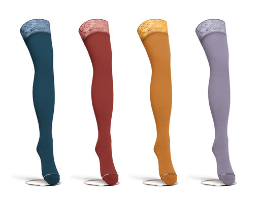 Aufmerksamkeit für die Modefarben 2023 schaffen die neuen Werbemittel und Dekomaterialien von BELSANA. Anhand der Musterstrümpfe können Kunden testen, wie die BELSANA Modefarben auf ihrem Hautton aussehen. Außerdem vermitteln die Muster einen Eindruck von der angenehmen Tragequalität des Materials.