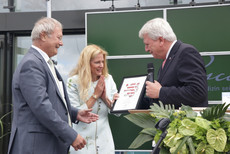Ministerpräsident Volker Bouffier gratuliert dem Unternehmerehepaar Annette und Jürgen Pascoe zur Eröffnung des neuen Produktionsgebäudes.Gießener Anzeiger / Manuela Falk