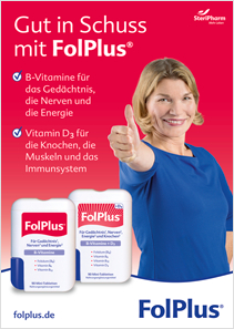 Das Vitamin-B-Trio in FolPlus® ist maßgeblich an der Umwandlung und somit Entsorgung von Homocystein beteiligt. Die in FolPlus® enthaltene Kombination kann Gedächtnis und Denkvermögen, Nerven- und Immunsystem sowie Antriebskraft und Energie positiv unterstützen.