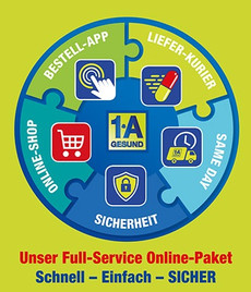 „Wir möchten es unseren Kunden so bequem wie möglich machen und ihnen Wartezeiten oder unnötige Laufwege ersparen“, erläutert 1A-Apotheker Arno Wagner. In der Regel gilt: Bis 14 Uhr bestellt, noch am selben Tag geliefert. Auf Wunsch bringt der 1A-GESUND Kurier, ein spezieller Lieferservice der 1A-GESUND Apotheken, die Ware im Anschluss an die pharmazeutische Beratung nach Hause oder an den Arbeitsplatz. Alternativ können die Kunden die „Click & Collect“-Variante wählen und die Bestellung in einer 1A-GESUND Apotheke ihrer Wahl abholen. Sachkundige Beratung ist von der Bestellung bis zur Abholung oder Auslieferung garantiert. Das gewährleistet der 1A-GESUND Kurier in direktem Kontakt mit der Apotheke. Sensible persönliche Daten bleiben uneingeschränkt geschützt.
