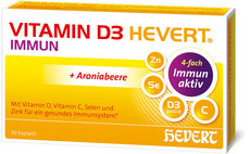 Nussbaum - Das klimaneutrale Familienunternehmen Hevert-Arzneimittel ergänzt sein Vitamin D3-Sortiment ab sofort um ein weiteres Präparat: Vitamin D3 Hevert Immun. Gemeinsam mit den Spurenelementen Selen und Zink sowie Vitamin C und natürlichem Aroniabeer-Pulver sorgt es effektiv für ein intaktes Immunsystem. Bereits mit einer Kapsel täglich können Erwachsene und Jugendliche ab 15 Jahren ihre Immunabwehr aktiv unterstützen. Das apothekenexklusive Vitamin D3 Hevert Immun ist vegetarisch, laktose- und glutenfrei.