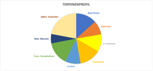 Die aktuelle Charge hat einen THC-Wert von 28,4% und einen Terpenen Anteil von gewaltigen von 3,52%. Der Geschmack und das Aroma werden als fruchtig, süß mit Noten von Guave und Salbei beschrieben.