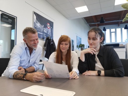 v.l.n.r: Thomas Madetzki, GF und Ausbilder; Alisa Adler, Assistenz und HR; Lea Pavlik, Auszubildende