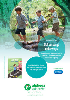 Frankfurt am Main - lich ist der Frühling da! Die Natur lockt alle aus dem Haus in den Wald und in den Garten. Damit die Spiel- und Reiselust nicht gebremst wird, können sich Apothekenkunden vom 18. April bis 29. Mai 2016 in den Alphega Apotheken, über die richtige Wundversorgung und den notwendigen Inhalt einer Reiseapotheke informieren. Die 3. Alphega Aktion „Reisen und Wundversorgung“ hält viele hilfreiche Ratschläge für Endverbraucher bereit.