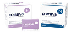 Die consiva® F und M Nährstoff-Formeln enthalten pro Packung 57 Sachets mit einem Pulver zum Auflösen in Flüssigkeit (Reichweite 28 Tage bei 2 Sachets/tägl.) – UVP: 34,95 Euro.