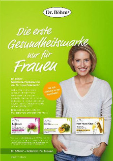 Das einzigartige Female-Health-Portfolio gibt am HV-Tisch eine strukturierte Orientierung, wenn es um typisch weibliche Gesundheitsfragen geht und erschließt neue Beratungsfelder für die mehrheitlich weiblichen Apotheken-Kunden. Das Portfolio umfasst zehn Produkte und reicht von Dr. Böhm® Kürbis für die Frau und Dr. Böhm® Cranberry plus für starke Blase und Abwehrstärke über Dr. Böhm® Isoflavon für hormonelle Balance bis hin zu Dr. Böhm® Haut Haare Nägel für gesunde Ausstrahlung. Kundinnen mit prämenstruellen Beschwerden, Regeltempoanomalien oder Mastodynie kann Dr. Böhm® Mönchspfeffer empfohlen werden. Bei wechseljahresbedingten psychischen und neurovegetativen Beschwerden eignet sich Dr. Böhm® Traubensilberkerze, bei nervösen Unruhezuständen wird Dr. Böhm® Passionsblume angewendet. Das Portfolio umfasst aber auch Produkte für viele weitere weibliche Gesundheitswünsche von Leistungsfähigkeit und Beweglichkeit bis hin zu normalem Blutdruck & Triglyceridspiegel (Dr. Böhm® Leistungselixier, Dr. Böhm® Gelenke & Knorpel, Dr. Böhm® Omega 3 complex).