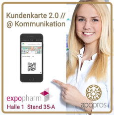 An unserem Stand auf der Expopharm(Halle 1, Stand 35-A) können Sie erfahren, was sich alles hinter unserem e-Vorteilsprogramm und einer digitalen Kundenkarte 2.0 verbirgt und welche Schritte für eine Implementierung wichtig sind – wir freuen uns auf Sie!