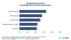 Bei der Aufnahme in das Sortiment sind für das Apothekenpersonal die Faktoren Apothekenexklusivität (66 Prozent) und Retourenregelung (56 Prozent) von besonderer Bedeutung und damit deutlich wichtiger als Aspekte wie Marge/Einkaufskonditionen (37 Prozent) oder Markenbekanntheit (32 Prozent). Zumindest in diesen Punkten sind sich Angestellte und Inhaber*innen einig, wobei für Letztere als Hauptentscheider die Apothekenexklusivität (77 Prozent) sowie Retourenregelung (70 Prozent) noch einmal wichtiger erscheinen.