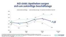 monaten. Der von aposcope erhobene Apotheken Geschäftsklima Index (AGI) gibt um 8 Punkte nach und liegt mit –1,0 Punkten wieder im negativen Bereich. Entscheidend dafür ist, dass sich die Geschäftserwartungen der Apotheken für die kommenden drei Monate deutlich eingetrübt haben.