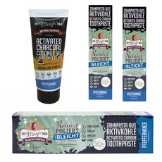 Die Aktivkohle-Zahnpasta mit Pfefferminzgeschmack ist die erste ihrer Art, die Aktivkohle aus Kokosnüssen mit Bentonit verbindet.