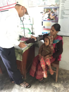 Unsere ehrenamtlichen Einsatzkräfte besuchten einige Gesundheitspostenleiter um zu sehen, ob sie das erlernte, pharmazeutische Wissen auch korrekt anwenden und dokumentieren. Schwierige Fälle werden dann gemeinsam besprochen: wie der von Harka (32 J.), Susmitas (26 J.) Ehemann. Sie ist heute mit ihrer kleinen Tochter Laxmi (sprich: Lakschmi) hier. Beide leiden an einer akuten Bronchitis. Sie haben hohes Fieber, starken Husten und bekommen nur sehr schlecht Luft. Neben Paracetamol gibt ihnen Bilash aufgrund des eitrigen Auswurfs auch Amoxicillin mit. „Der Auswurf deutet auf eine zusätzliche Infektion mit Bakterien hin, deshalb ist ein Antibiotikum nötig“, konstatiert Bilash. Und erklärt weiter, dass er ansonsten nur symptomatisch das Fieber behandeln würde.