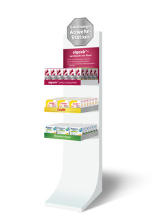 Gute Gründe für die Apotheken, auch in der nächsten Erkältungssaison algovir für ihre Kunden vorrätig zu haben und sich schon jetzt (vom 1. April bis zum 31. Mai 2023) mit dem aufmerksamkeitsstarken Aktionspaket für den Winter zu bevorraten. Das Paket besteht aus einem hochwertigen Bodenaufsteller aus Metall zur Dauerplatzierung (bestückt mit 30 x algovir Effekt und 6 x algovir Kinder) und/oder einem attraktiven, platzsparenden HV-Display mit 15 x algovir Effekt und 3 x algovir Kinder.
