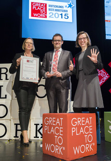 Bei der Preisverleihung in Berlin am 4. März 2015 wurden 100 große, mittlere und kleinere Unternehmen aller Branchen und Regionen für ihr besonderes Engagement bei der Gestaltung einer mitarbeiterorientierten Arbeitsplatzkultur ausgezeichnet. Eingeladen hatten das Great Place to Work® Institut mit seinen Partnern Handelsblatt, personalmagazin und dem Demographie Netzwerk ddn.