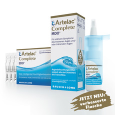Ab sofort wird nun auchArtelac® Complete MDO® in der bewährte MDO® ausgeliefert. Das Produkt ist dank seiner intelligenten Inhaltsstoffkombination aus Lipiden, Hyaluronsäure, Carbomer ideal für Kunden mit tränenden Augen und bei stärkeren Symptomes des trockenen Auges.