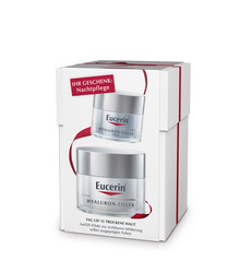 In jedem X-MAS Set befindet sich als Gratis-Zugabe eine exklusive 20 ml Nachtpflege. Sie ergänzt die tägliche Hautpflege mit den Eucerin HYALURON-FILLER Produkten für eine optimale Anti-Falten-Wirkung. Die Nachtcreme wird abends auf das gereinigte Gesicht, den Hals und das Dekolleté aufgetragen und sanft in die Haut einmassiert. Über Nacht entfaltet sie dann ihre ganz besondere Wirkung: Denn in der Nacht findet die Entspannungs- und Regenerationsphase der Haut statt. Der Hautstoffwechsel startet, die Durchblutung nimmt zu und die Zellteilung beschleunigt sich. Die ideale Zeit für ein hochwirksames Anti-Age-Produkt, denn pflegende und regenerierende Wirkstoffe werden jetzt noch intensiver aufgenommen. Im Schlaf unterstützt die hochwertige Anti-Age Nachtpflege von Eucerin den Regenerationsprozess der Haut, versorgt sie intensiv mit Feuchtigkeit und mindert die Faltentiefe. Für ein angenehmes Verwöhn-Gefühl und ein strahlend-schönes Erwachen am nächsten Morgen.