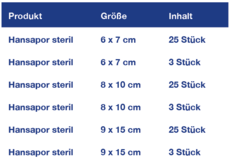 Erhältlich ist Hansapor in drei Abmessungen und zwei Packungsgrößen (25er Pack und 3er Pack) in der Apotheke. Ab April 2017 sind die Produkte für Apotheken bestellbar.
