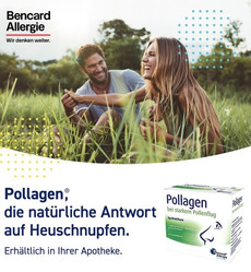 Mit Pollagen kommen Kinder ab 1 Jahr und Erwachsene gut durch die Pollensaison. Pollagen ist einfach anwendbar, vegan, gluten- und laktosefrei, sowie rezeptfrei in ihrer Apotheke erhältlich. Pollagen ist vom Allergiespezialisten Bencard Allergie. Das Behandeln von Allergien ist seit vielen Jahren die Kernkompetenz des Münchner Unternehmens. www.pollagen.de