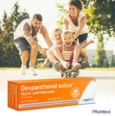 Friedrichsdorf - Der Sommer ist eine heiß ersehnte Jahreszeit, da sie zahlreiche sportliche Aktivitäten wie Radfahren, Rollschuhfahren, Skateboardfahren und Wandern ermöglicht. Dabei können kleinere Hautverletzungen auftreten. Dexpanthenol axicur® Wund- und Heilcreme unterstützt durch ihren Wirkstoff Dexpanthenol die Wundheilung bei Groß und Klein. Lokal aufgetragenes Dexpanthenol kann einem erhöhten Bedarf an Pantothensäure, der durch die Schädigung der Haut oder Schleimhaut entsteht, entgegentreten. Es unterstützt damit die Bildung neuer Hautzellen und kleine oberflächliche Wunden und Verletzungen der Haut werden in der Heilung gefördert.
