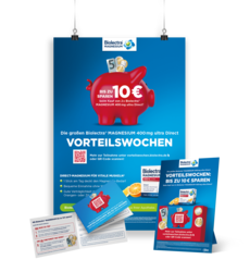 Für die Vorteilswochen hat Biolectra® MAGNESIUM zahlreiche Aktionspakete geschnürt, mit denen Sie in Ihrer Offizin für die Cash-Back-Aktion werben können.