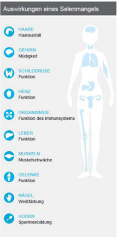 Selen ist lebenswichtig: Aber die Aufnahme des Spurenelements mit der Nahrung reicht oft nicht aus. Grund: Selenarme Böden in Mitteleuropa (Grafik biosyn)