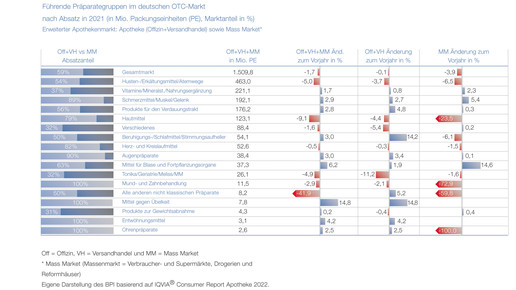 Berlin - Die „OTC-Daten 2022“ des Bundesverbands der Pharmazeutischen Industrie (BPI e. V.) zeigen: