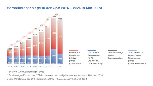 Nach wie vor sind Unternehmen erheblich von finanziellen Zwangsabschlägen belastet: Allein durch Rabattverträge sparen Krankenkassen jährlich fast sechs Milliarden Euro, durch Festbeträge acht Milliarden Euro und durch Erstattungsbeträge voraussichtlich über 7,3 Milliarden Euro bis zum Jahresende ein. Damit trägt die pharmazeutische Industrie wesentlich zur Stabilisierung der Gesetzlichen Krankenversicherung bei.