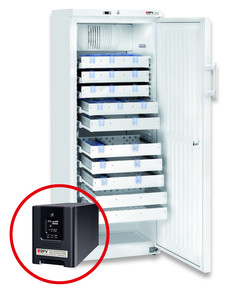Mit der leistungsfähigenBPV USV (Unterbrechungsfreie StromVersorgung) für Kühlschränke kann ein Stromausfall je nach USV-Modell für ca. 4-5 Stunden* überbrückt werden. Mit der optional erhältlichen Batterie-Erweiterung kann die Überbrückungszeit auf ca. 8-9 Stunden* verlängert werden. Gleichzeitig wird der Medikamentenkühlschrank vor einer Beschädigung durch Spannungsschwankungen oder Überspannung geschützt. So können Sie die Sicherheit für Ihr Kühlgut deutlich erhöhen und wirtschaftliche Risiken in Ihrer Apotheke nachdrücklich senken.