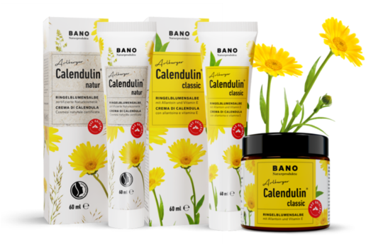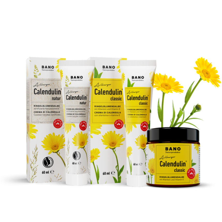 Wer eine Ringelblumensalbe mit demselben Wirkstoffgehalt, jedoch mit leichter Textur und mildem Geruch bevorzugt, ist mit der Calendulin® Natur Ringelbumensalbe gut beraten. Die Calendulin® Natur Ringelblumensalbe ist natrue-zertifiziert. Sie pflegt und schützt die Haut auf natürliche Weise und ist der ideale Begleiter bei rauer, empfindlicher und überbeanspruchter Haut