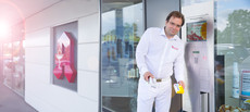 „Meine DACOS Notdienstanlage ist ein Zugewinn an Komfort für uns und unsere Kunden. Sie sieht gut aus und ermöglicht einen Service, der Kunden begeistert.“ Apotheker Benjamin Waldmann vor seiner Apotheke am Adlmannsberg in Wettstetten.