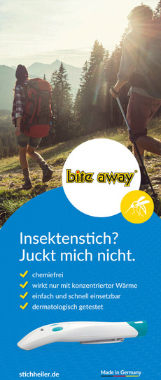 München - Empfehlen Sie Ihren Kunden bite away® der heiße Tipp gegen Insektenstiche. Ohne Chemie gegen lästigen Juckreiz, Schwellungen und Schmerzen vorgehen.
