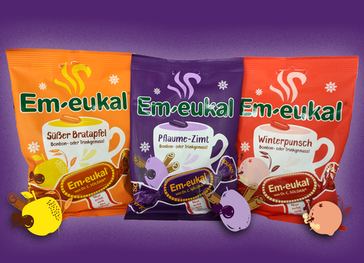 Adelsdorf - Vor 100 Jahren kreierte der Apotheker und Medizinalrat Dr. Carl Soldan das erste Em-eukal Bonbon. Und empfahl das Bonbon entweder zu lutschen oder heiß als wohltuendes Getränk zu genießen. Gesagt, getan. Ein Familienunternehmen, ein Wort: Für die diesjährige kalte Saison haben die Bonbonspezialisten von Dr. C. SOLDAN ein winterliches Em-eukal Genusstrio gezaubert – hergestellt mit sorgsam ausgewählten Zutaten in gewohnter Premiumqualität. Zur Auswahl stehen die Varianten Em-eukal Süßer Bratapfel, Winterpunsch und Pflaume-Zimt. Die Bonbons, nur echt mit der Fahne, überraschen den Gaumen als Lutscherlebnis oder aufgelöst – mit einem Schuss Saft und Gewürzen verfeinert – als Heißgetränk. Erhältlich ist die Em-eukal Winteredition ab Oktober, solange der Vorrat reicht. Ein aufmerksamkeitsstarkes Display sorgt für Kaufimpulse zur rechten Zeit.