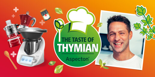 Dreh- und Angelpunkt der Aspecton-Aktion ist die Internetplattform www.the-taste-of-thymian.de mit Videos, Rezept-Challenges, Lern-Angeboten und Live-Aktionen. Alle, die zum Apotheken-Fachpersonal gehören und hier fleißig virtuelle Thymianzweige sammeln, können an den verschiedenen Stationen der Challenge immer wieder an Verlosungen teilnehmen und mit etwas Glück attraktive Preise gewinnen. Darunter sind prallgefüllte Kochboxen, ein Thermomix TM6 für zuhause sowie die Teilnahme an zwei Live-Koch-Events mit Starkoch Alexander Kumptner in München – inklusive Anreise und Übernachtung.