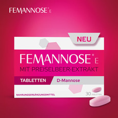 Die Inhaltsstoffe zeichnen sich durch eine gute Verträglichkeit aus. Außerdem sind sie gluten- und laktosefrei und können ab 14 Jahren sowie in Absprache mit dem Arzt während der Schwangerschaft und Stillzeit eingenommen werden. FEMANNOSE® E ist in einer Packung mit 30 Tabletten erhältlich.