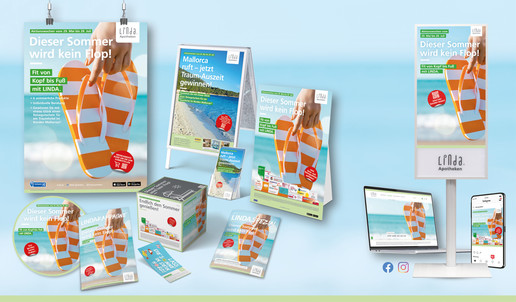 Teilnehmende Apotheken erhalten zur Unterstützung ein umfangreiches Werbemittelpaket für Print- und digitale Maßnahmen. Fokusprodukte und Gewinnspiel werden im LINDA Spezial Beihefter der Apotheken Umschau, auf Plakaten und Dekomaterial, den Social Media-Kanälen und Webseiten sowie auf den ePostern und Apotheken-TV-Geräten beworben. Hinzukommt ein umfangreicher Kampagnen-Leitfaden für das Apothekenteam mit Tipps für ein erfolgreiches Beratungsgespräch am HV.