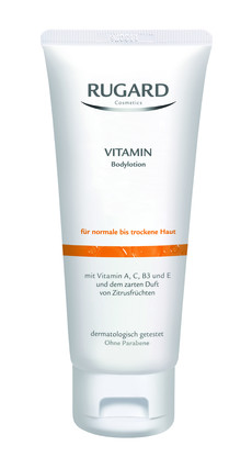 Die RUGARD Vitamin Bodylotion sorgt mit zartem Zitrusduft für ein Wohlgefühl am ganzen Körper: Neben den Vitaminen garantiert Sheabutter und Avocadoöl eine intensive und langanhaltend gepflegte Haut. Die Bodylotion verleiht nach dem Sonnenbaden, Duschen oder Baden ein wunderbar zartes Hautgefühl und fördert die Aufnahme von Feuchtigkeit.