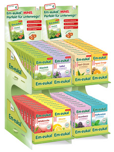 Zur Einführung in der Apotheke sorgt ein ansprechender HV-Aufsteller für Aufmerksamkeit. Dieser bietet Platz für vier Sorten und klickt man zwei HV-Aufsteller ineinander, kann das gesamte Em-eukal MINIS-Sortiment abgebildet werden. Ganz nach dem Motto: Kleines Bonbon, großer Geschmack! Weitere Informationen über Em-eukal unter em-eukal.de und über Dr. C. SOLDAN unter soldan.com.