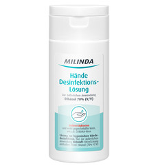 Neben den Gesundheitseinrichtungen werden Desinfektionsmittel unter der Marke „Milinda“ auch an die Apotheken deutschlandweit ausgeliefert. Die Hände Desinfektions‐Lösungen mit 70 vol. % Ethanol sind in zwei Größen verfügbar und decken damit die gängigen Bedürfnisse ab: 50 ml als Pocket Variante „to go“ und 300 ml für den Familienvorrat. Das Hygiene Handgel (50 ml) beinhaltet ebenfalls 70 vol. % Alkohol und zusätzlich noch pflegende Inhaltsstoffe wie Glycerin und Panthenol. Alle Biozidprodukte entfernen Bakterien und wirken gegen behüllte Viren, zu denen auch die Corona‐Viren gehören.