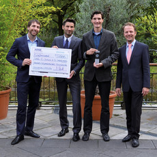 Preisverleihung in Hamburg (v.l.n.r.): Mathias Hevert, Geschäftsführer Hevert-Arzneimittel, Dr. Dr. Sascha Venturelli, Dr. Christian Busch und Dr. Jan-Christoph Wollmann, Leiter Scientific & Regulatory Affairs bei Hevert.