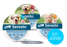 Seresto® ist in drei Varianten erhältlich: für Hunde unter 8 kg Körpergewicht, für Hunde ab 8 kg Körpergewicht sowie für Katzen.