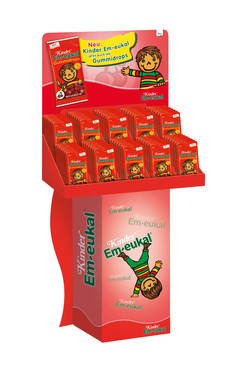 Mit einem aufmerksamkeitsstarken Aktionsdisplay sorgen die Kinder Em-eukal Gummidrops für ein sicheres Umsatzplus in der Apotheke