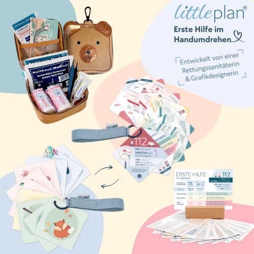 littleplan® schlägt eine Brücke zwischen Besorgt sein und Bedürfnis. Unsere Produkte wie z.B. Poster, Buggybücher, Erste-Hilfe-Taschen und Themenkarten vermitteln auf verständliche und nahbare Art und Weise das Thema Erste Hilfe.
