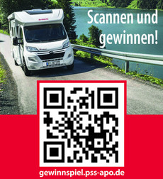 Noch bis zum 31.05.2022 können Apothekerinnen und Apotheker über nebenstehenden QR-Code oder aber über gewinnspiel.pss-apo.de auf unserer Gewinnspielseite teilnehmen.